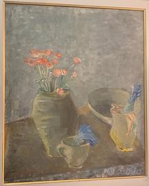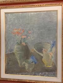 Angelo Del Bon (1898-1952) titolo: "fiori rossi" tecnica: olio su tela misure: 46x55 cornice: 68x78 timbro: galleria annunciata