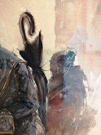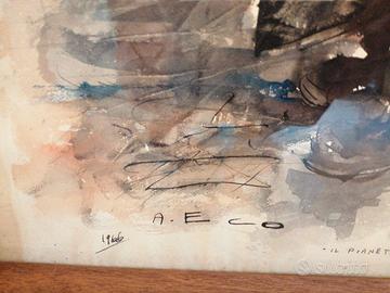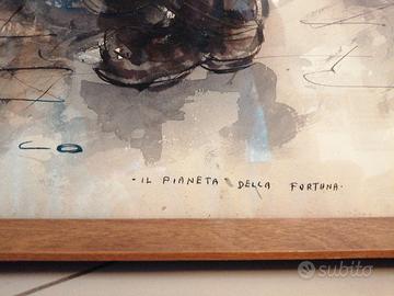 "Il pianeta della fortuna". Quadro di Aniello Eco, 1966. No spedizione, ma disponibile anche al ritiro a Ostia. Due firme: una in basso a sinistra con l'indicazione dell'anno e una in verticale sulla destra. Qualche segno di usura sul bordo superiore.