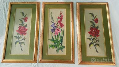 QUADRO ANNI 70’ RICAMATO A MEZZO PUNTO RAFFIGURANTE GLADIOLI, CON CORNICE IN LEGNO DORATA, MISURE 62 X 32 CENTIMETRI, IN PERFETTE CONDIZIONI. PER CHI FOSSE INTERESSATO SONO DISPONIBILI ANCHE DUE QUADRI CON RAFFIGURATO UN RAMO DI ROSE. NON UTILIZZO SUBITO PER PAGAMENTO E SPEDIZIONE. SE NON È POSSIBILE UN INCONTRO DIRETTO PER CONCLUDERE LA TRASLAZIONE DEL QUADRO, IL PAGAMENTO DEVE AVVENIRE ANTICIPATAMENTE TRAMITE BONIFICO O ALTRO SISTEMA DI PAGAMENTO TELEMATICO. PER L’EVENTUALE SPEDIZIONE È UTILIZZATO CORRIERE TRACCIABILE POSTE ITALIANE O CORRIERE GESTITO DELL’ACQUIRENTE. VENDO A 30 EURO