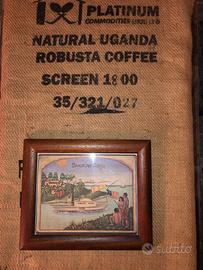 Quadro anticato misure 36x30 Caffè del Brasile con sacco Juta 110x67 caffè Uganda.Ideale x arredo Bar/casa o altro.