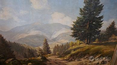 Vendo dipinto olio su tela paesaggio montano di qualità con cornice coeva. 1930-40 circa. Misure 104x85cm circa..non spedisco