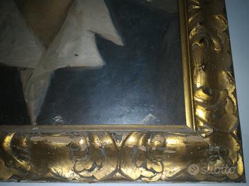 Quadro Ritratto d'autore Autentico con Firma e timbro galleria D'arte, Cornice in foglia d'oro del 1700