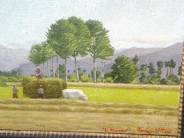 "Il Maggengo 1935 -Attissano-Busca" dipinto olio su tela cm 34 x 44 , più cornice, del pittore Stefano Bargis ( Busca 1916 - 1999). Firma, titolo e data in basso a destra. Titolo, anno e località al retro. Con etichetta dell'esposizione alla mostra "Stefano Bargis-opere inedite-Busca, museo Casa Francotto 12-2016 . Si garantisce autenticità e provenienza. Si rilascia ricevuta fiscale.