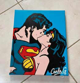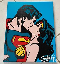 Cerchi un regalo per San Valentino? Acquista questo romantico dipinto in acrilico su tela,raffigurante il bacio tra Superman e Wonder woman. Accetto offerte, imballaggio sicuro.