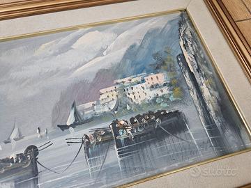 Vendo quadro paesaggio barche pittore Raffaele Maietta nello stato d'uso in cui si trova. Presente piccolo segno nella cornice come fotografato. Misure indicate con foto