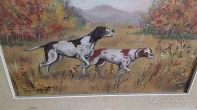 Quadro del pittore Mingo Carminati cani da caccia .si consegna a Genova spedizione in tutta Italia .