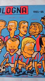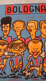 QUADRO SU CARTONCINO TECNICA MISTA COLLAGE CARICATURE GIOCATORI BOLOGNA 1965/66 ESEGUITO DAL VIGNETTISTA E FUMETTISTA GIANCARLO MANGINI ORIGINALE PEZZO UNICO DIMENSIONI CM 48x32
