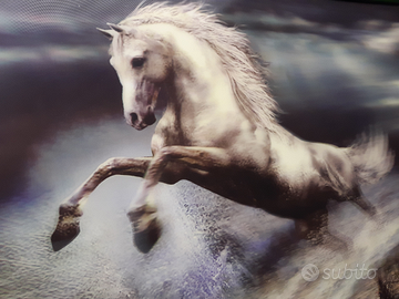 Quadro misure 60 x 40 rappresenta un cavallo che corre tra le onde. Effetto tridimensionale che permette muovendosi di vedere il cavallo che effettivamente corre e cambia posizione. Ottima la cornice di negozio bresciano