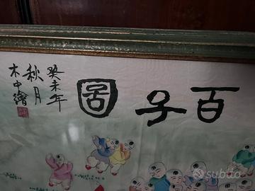 Quadro cinese 1943 白子圖 , "dipinto dei cento bambini" venduto con corinice originale cinese. 癸未年 (guǐwèi nián) = “anno Guiwei” del ciclo sessagenario (干支). 1943 秋月 (qiū yuè) = “mese d’autunno” / “in un mese autunnale” / “in autunno” 木中绘 (Mùzhōng huì) = “dipinto da Muzhong”