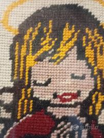 Vendo quadro con cornice spessa in legno e vetro - angelo a punto croce e passpartu'.. La parte posteriore non è coperta e si può vedere l'angelo al rovescio, i punti del ricamo. Per interessati ho altre foto. Condizioni buone misura altezza cm 40 x larghezza cm 34 x larghezza cornice cm 4. Vige regola visto piaciuto e preso. No perditempo e affaristi grazie!!!
