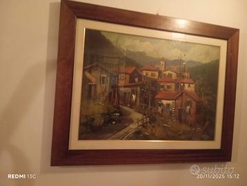 Quadro dipinto ad olio con firma in foto un metro per 60 con cornice in legno massello ritiro a mano