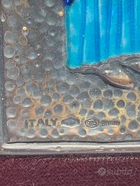 Quadro con placca in argento 925 e smalti raffigurante la Crocifissione, firmato Ottaviani.