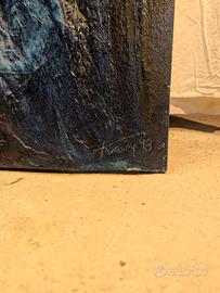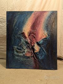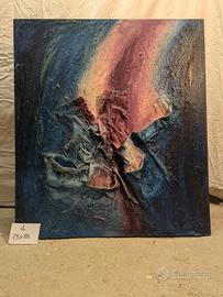 Tecnica mista su tela con rilievi materici (pittura materica astratta). Autore Krasny. Dimensioni 75*85