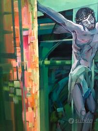 Vendo quadro raffigurante un crocifisso fatto da un pittore laziale non udente: Fantauzzi