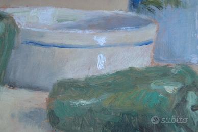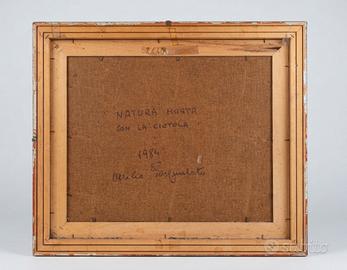 Attilio Pasqualato. Olio. Quadro nella piena maturità dell'artista. Acquistato direttamente nel suo atelier e con cornice originale. Firma su retro e frontale. "Natura morta con ciotola"50 x 40 (66 x 57 in cornice) Prezzo in trattativa privata.