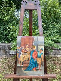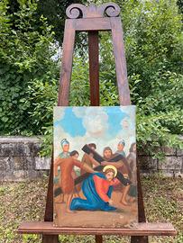Pittura d’epoca olio su tela in stile NAIF raffigurante VIACRUCIS. Misure cm. 66x46. Condizioni Buone con inevitabili segni del tempo. Il prezzo indicato è per un solo quadro. Disponibilità n.3 con immagini diverse vedi foto. Anche per cappelle cimiteriali.
