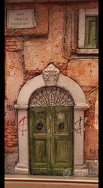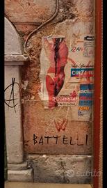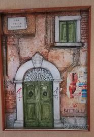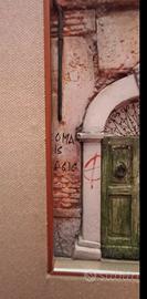 Bassorilievo polimaterico del pittore romano di Via Margutta Fausto Battelli (Roma 1934 - 2018). Pittura/scultura "Via delle vergini". Misure 14 x 19 cm, 33 x 39 cm con cornice. Condizioni perfette.