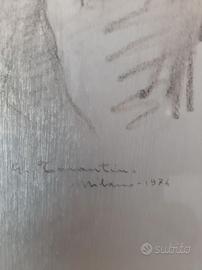 Quadro su lamina del pittore Giuseppe Tarantino , volto di donna,1974 .cornice in metallo . Ritiro a mano urgente a Senigallia o su prenotazione a Milano
