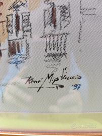 vendo pittura di René Migliaccio pittore conosciuto di Cuneo un bel dipinto della torre civica misura pittura 42x32