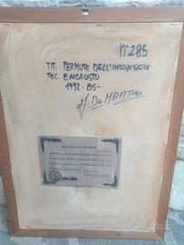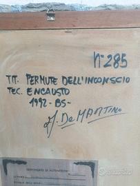 Quadro di Antonio De Martino titolo Permute dell'inconscio, realizzato con tecnica encausto del 1992, opera n. 285 con certificato di autenticità. Misure dipinto 34 x 49 cm Misure del quadro comprensive della cornice 46 x 61 cm