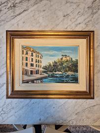 vendo quadro ad olio originale di Mara sanguineti rappresentante Portofino con le case e di castello. misure 20 cm x 30 cm
