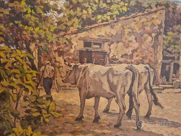 cedo quadro di paolo bigazzi.contadino con vacche in toscana.no cornice