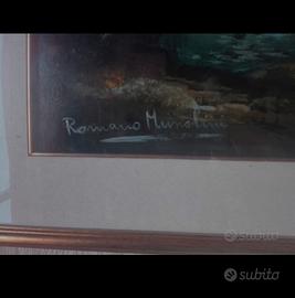 Quadro di Romano Mussolini del 1972 Paesaggio Campestre Quadro 65 x55 Tela 40 x 50