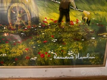 Quadro su tela come da cornice di Romano Mussolini. Il titolo dell’opera è: lavoro nei campi. Misure 40x60