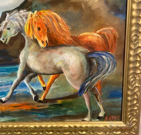 Dipinto Quadro olio su tela Aligi Sassu “Cavallini in riva al mare”