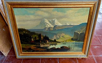 Quadro olio su tela castello bavarese anni 30 o 40. Molto bello. I quattro angoli della cornice vanno riattaccati e la stessa necessita di un trattamento antitarlo..nulla di impegnativo. misure 60×80cm circa con cornice