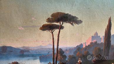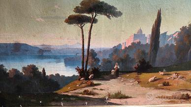 Quadro dipinto antico Olio Su Tela Dell 800 Ottim