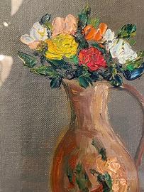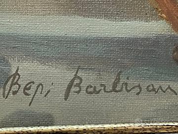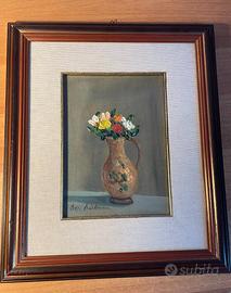 Questo dipinto raffigura una natura morta con un vaso di fiori, firmato "Bepi Barlusan". Misure di cornice : 40 x 34 cm, dipinto 24 x 18 cm.