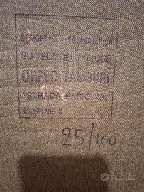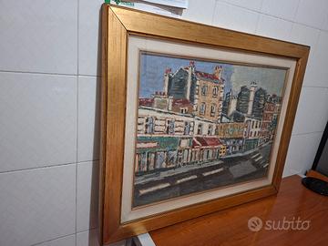 quadro dipinto dell artista italiano ORFEO TAMBURI " la strada parigina" il dipinto rappresenta uno scorcio cittadino parigino, caratterizzato dalle tipiche architetture con tetti spioventi e facciate scandite, da numerosi finestre, spesso identificate, come case di Parigi. il dipinto olio su tela, dietro del quadro si trova il timbro di autenticità in basso a destra si trova la firma del artista Tamburi, si tratta di una edizione limitata "25 / 100" in ottime condizione , misure altezza 67 cm. larghezza 83 cm. spessore 4 cm. non spedisco consegna a mano.