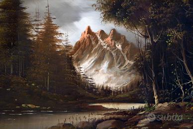 quadro di EMILIO TOZZI "Sottobosco con ruscello" olio 30x60 primi anni 80 con certificato di autenticità dimensione esterna cornice 50x80