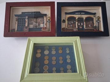 Bellissimo espositore in 3D con l'intera collezione di monete vecchia lira: le sole due cinquecento lire d'argento valgono 30 euro, pertanto non si effettuano sconti. I quadri presenti nella foto rappresentanti vecchi bar, sono presentanti in altro annuncio