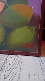 Opera d'arte firmato JAIME 2003, oleo su tela. opera con cornice in legno fata in Brasil. La figura rappresenta donne Bahiane di Bahia con anas, mango e arance. dimensioni 90×70 con cornice. Prezzo trattabile. la spedizione è a carico del cliente e varia da 1 a più o meno 50 euro circa.