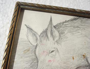 PARTICOLARE E CURIOSA OPERA FIRMATA DALL'ARTISTA RAFFIGURANTE UN MAIALE LEGATO.