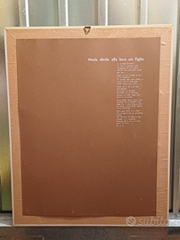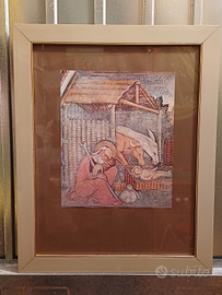 Quadro con cornice e vetro con Immagine della Nascita di Gesù - Retro del quadro con versetto del Vangelo di Luca.