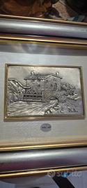 Bellissimo quadro in argento 925 con una scena di un mulino ad acqua.
