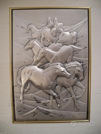Bellissimo quadro di Ottaviani in argento cavalli al galoppo, in rilievo, molto plastico. Misure 64 x 53,5 cm comprensive di cornice. Svendo a soli 350 euro