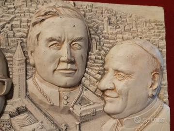 Vendo quadro con cornice in velluto rosso e in gesso tre Papi e sullo sfondo Venezia e in un angolo la firma dell' autore.. Condizioni buone, forse serve un piccolo restauro in un volto di un Papa.. Misura larghezza cm 32 x altezza cm 25. Vige regola visto piaciuto e preso. No perditempo e affaristi grazie!!!