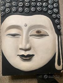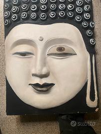 Pannello decorativo in legno raffigurante Volto del Buddha.