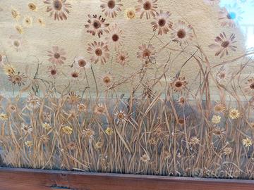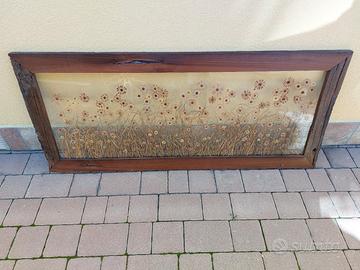 Bellissimo quadro in vetro con all'interno composizione di fiori secchi. Cornice in legno antico.
