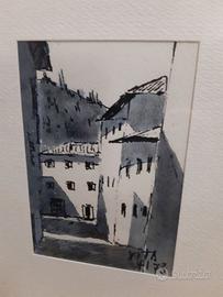 Quadro ad inchiostro del pittore Nino Vitali, piccole dimensioni, sul retro relative indicazioni.