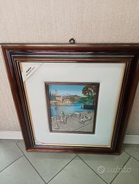 Prestigioso quadro La Gisca Bassorilievo in Argento 925 Lavorazione artigianale Cornice in legno lavorato con finitura dorata Certificato di autenticità In scatola confezione originali Foto fedeli Lunghezza 59cm Larghezza 53cm