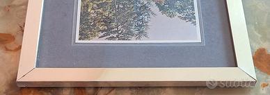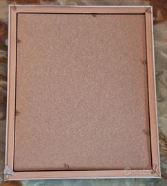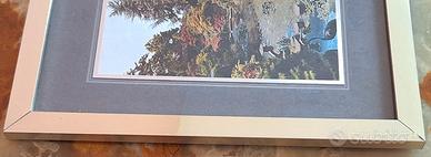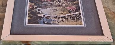 Elegante quadro decorativo su lamina metallica raffigurante un suggestivo paesaggio di giardino con airone, immerso in un ambiente naturale ricco di vegetazione e riflessi d’acqua. La scena è realizzata con tecnica a stampa su lamina/metallo, che conferisce luminosità e particolari effetti iridescenti, creando giochi di luce che donano profondità e tridimensionalità all’immagine a seconda dell’angolazione. Il soggetto naturalistico e la resa decorativa lo rendono un pezzo ideale per arredamenti classici, rustici o vintage, perfetto per ambienti domestici, studi o case di campagna. Il quadro è protetto da vetro frontale ed è inserito in una cornice con rivestimento in metallo su base in legno, che ne completa l’aspetto elegante e decorativo. 📐 Misure: 28,5 × 33,5 cm 📌 Condizioni: presenti segni del tempo coerenti con l’età 📸 Foto: rappresentano esattamente l’oggetto in vendita L’oggetto verrà imballato con la massima cura utilizzando materiali protettivi adeguati e spedito con tracking, per garantire la massima sicurezza durante il trasporto. 💬 Per qualsiasi informazione aggiuntiva resto a disposizione.