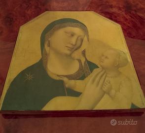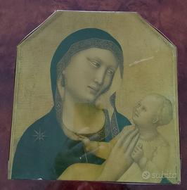 QUADRO MADONNA COL BAMBINO, ANTICO HA PIÙ DI 130 ANNI, ALTEZZA 25 CM LARGHEZZA 24 CM