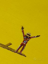 Quadro 20x20 cm dipinto a Mano raffigurante lewis hamilton in ferrari che celebra la sua vittoria alla sprint race del gp di shanghai 2025. Dettagli pazzeschi e oggetto sicuramente unico e di impatto