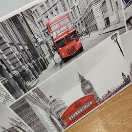 Vendo per inutilizzo quadro con Londra in formato puzzle, immagini della città inglese in bianco e nero e il classico bus e cabina telefonica in rosso. Misura cm 140 x cm 45 ancora sigillato nel cellofan con prezzo attaccato ma per mancanza di posto non c'è la foto nell'annuncio.. Nuovo mai appeso mai aperta la confezione.. Vige regola visto piaciuto e preso. No perditempo e affaristi grazie!!!