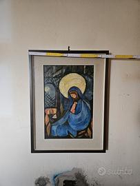 Dipinto moderno raffigurante la Madonna col Bambino, dai colori intensi e stile espressionista.